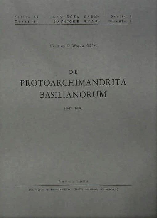 De protoarchimandrita Basilianorum, (1617-1804) / Meletius M. Wojnar.