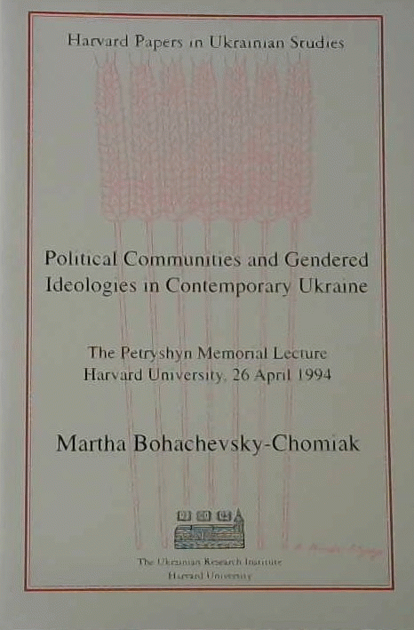 Political communities and gendered ideologies in contemporary Ukraine : the Vasyl and Maria Petryshyn Memorial lecture, Harvard University, 26 April 1994 / Martha Bohachevsky-Chomiak ; Ukrainian Research Institute, Harvard University.