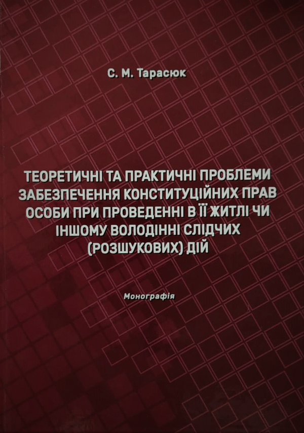 Теоретичні та практичні проблеми забезпечення конституційних прав особи при проведенні в її житлі чи іншому володінні слідчих (розшукових) дій : монографія / Тарасюк Сергій Миколайович.